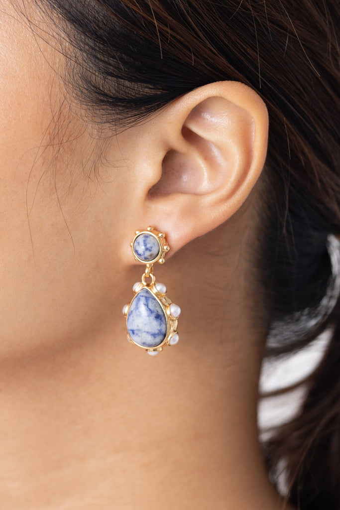 Materials: sodalite blue natural stone,gold drop and stud back closure