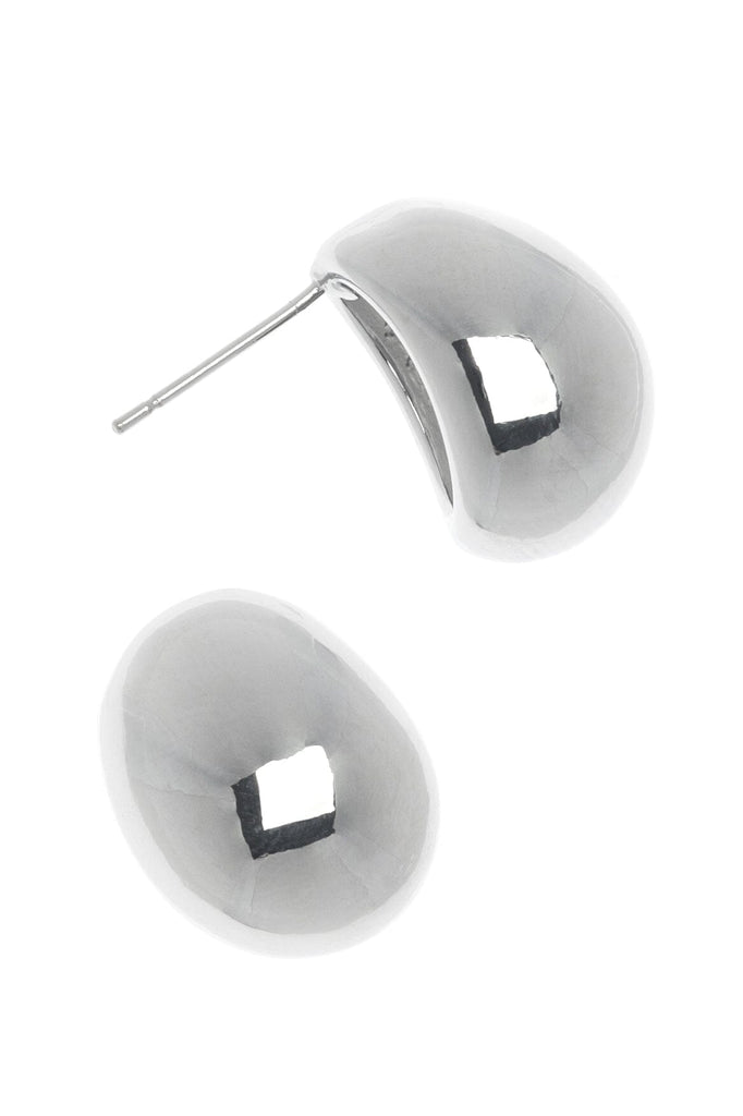 Rhodium Bean Stud Earrings