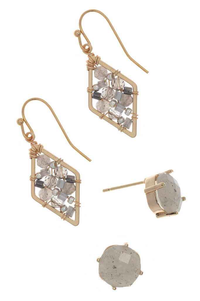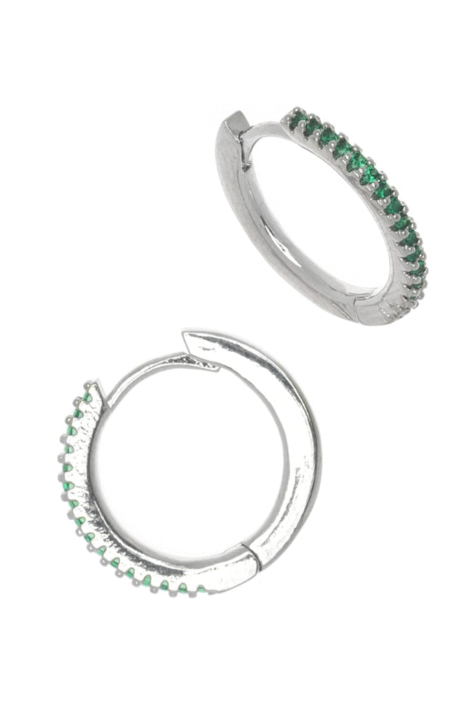 RHODIUM GREEN STUD HUGGIE EARRINGS