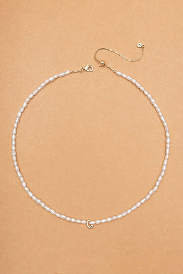 Materials: white pearl beads, golden C pendant, lobster clasp