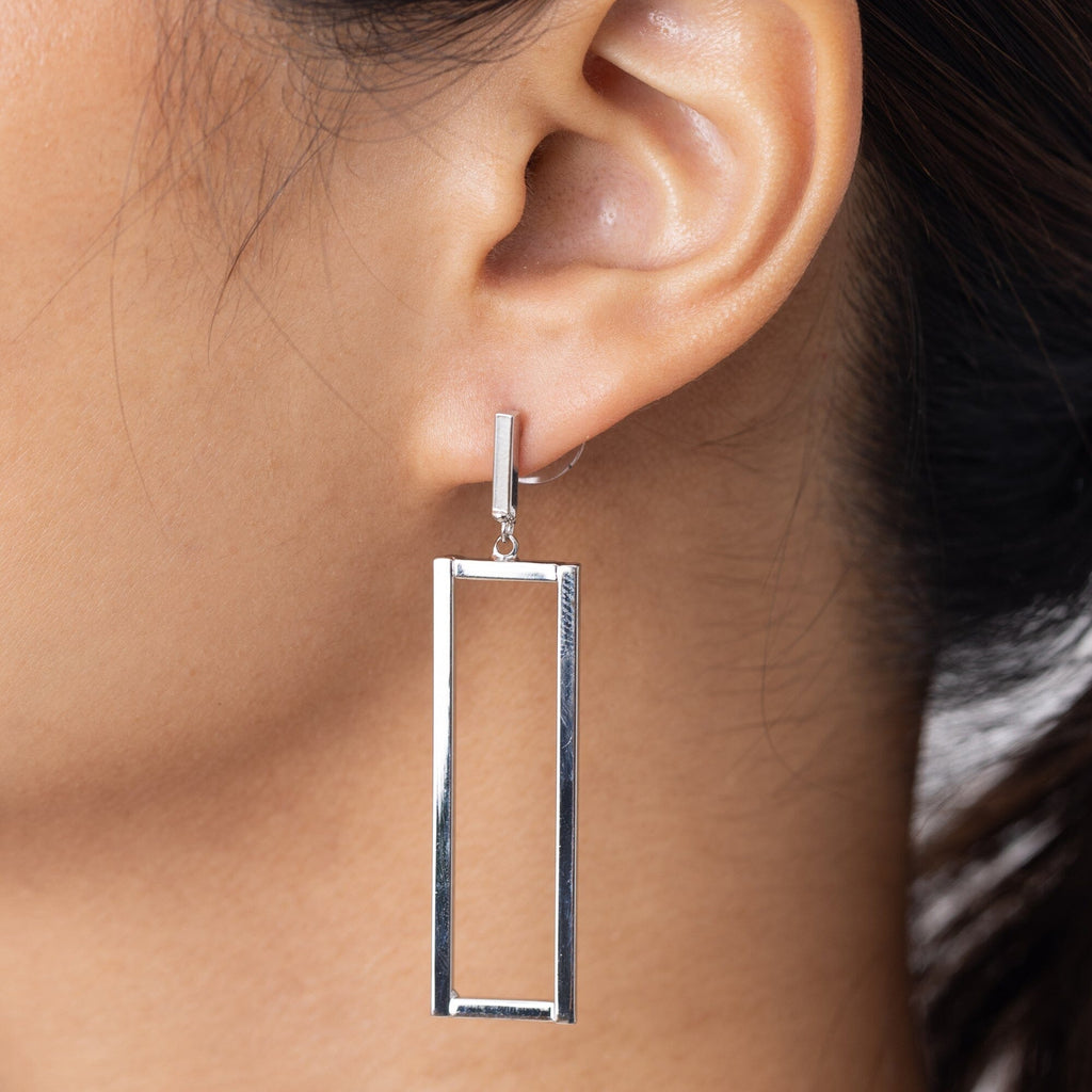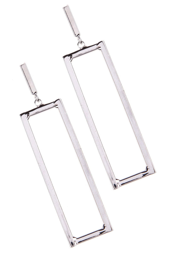 RHODIUM GEO RECTANGLE DROP EARRINGS