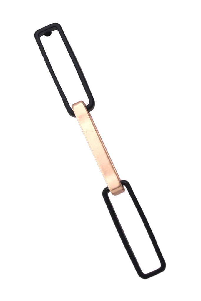 Materials: gold-plated metal with matte black metal links, stud back closure